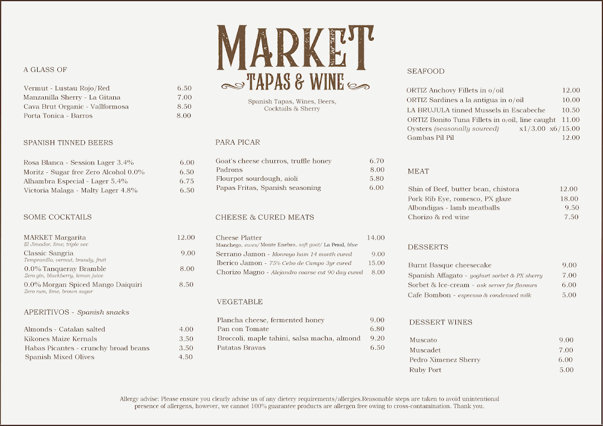 Market Tapas & Wine in Hove offers a vibrant and inviting atmosphere, ideal for those seeking a blend of delicious tapas and expertly curated wines. Located at 42 Western Rd, Brighton and Hove, Hove BN3 1JD, the restaurant is a charming spot that brings a taste of Spain to the UK. Their menu features a variety of authentic tapas, each designed to offer something unique and flavorful. Whether you’re indulging in crispy patatas bravas, smoky chorizo, or fresh seafood, each dish is a delightful exploration of Spanish cuisine.
